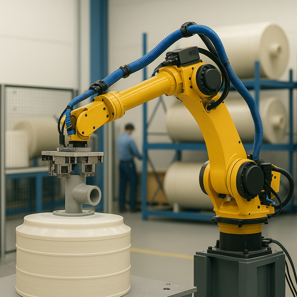Optimizing composite tank and scrubber production with advanced robotics and process control.
